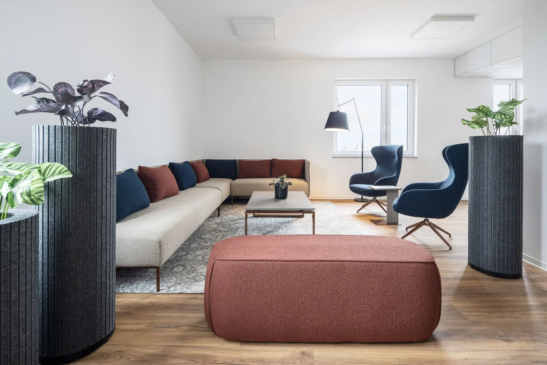 Für das SRH RPK Wiesloch wurde ein Raumkonzept entwickelt, das auf die komplexen Anforderungen verschiedener Nutzergruppen abgestimmt ist. Ziel war es, eine funktionale und zugleich einladende Umgebung zu schaffen, die die Bedürfnisse von Bewohner*innen, Personal und Gästen gleichermaßen berücksichtigt. Die Herausforderung bestand darin, eine breite Palette an Räumen – von Büros und Konferenzbereichen bis hin zu Appartements und Ruhebereichen – individuell zu gestalten. Hierbei wurden Farb- und Materialkonzepte wie Kupfer, Anthrazit und Blau gezielt eingesetzt, um eine klare und harmonische Atmosphäre zu schaffen. Mit der Auswahl vielseitiger Möbel und durchdachter Ausstattung entstand ein Raumkonzept, das Effizienz, Flexibilität und Wohlfühlen perfekt miteinander vereint.